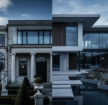 Clássico → demanda mais detalhes, molduras, telhados e acabamentos sofisticados.